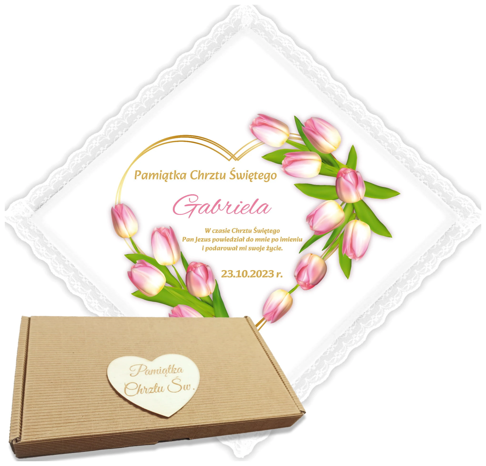 Spraw, by ta szatka była wyjątkowa! Oferujemy możliwość personalizacji imieniem Twojego dziecka oraz datą ceremonii.