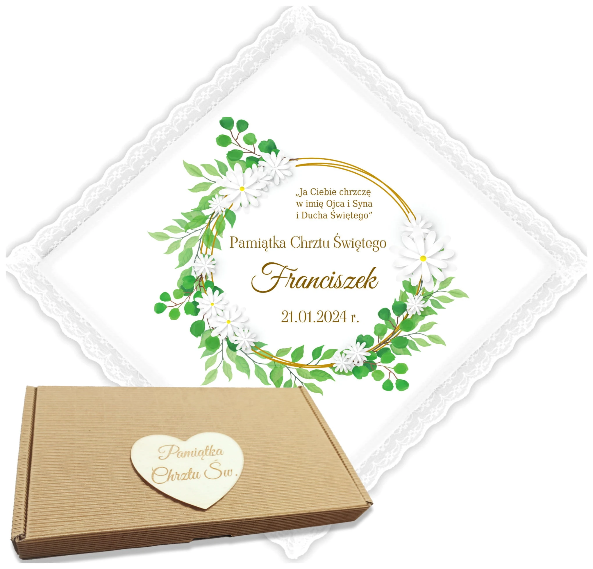 Spraw, by ta szatka była wyjątkowa! Oferujemy możliwość personalizacji imieniem Twojego dziecka oraz datą ceremonii.