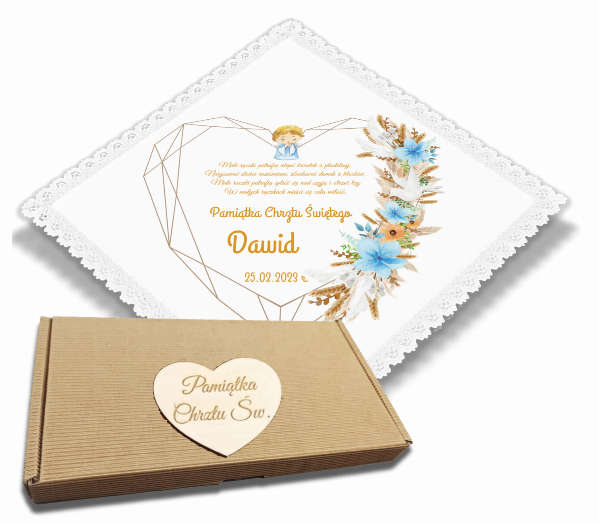 Spraw, by ta szatka była wyjątkowa! Oferujemy możliwość personalizacji imieniem Twojego dziecka oraz datą ceremonii.