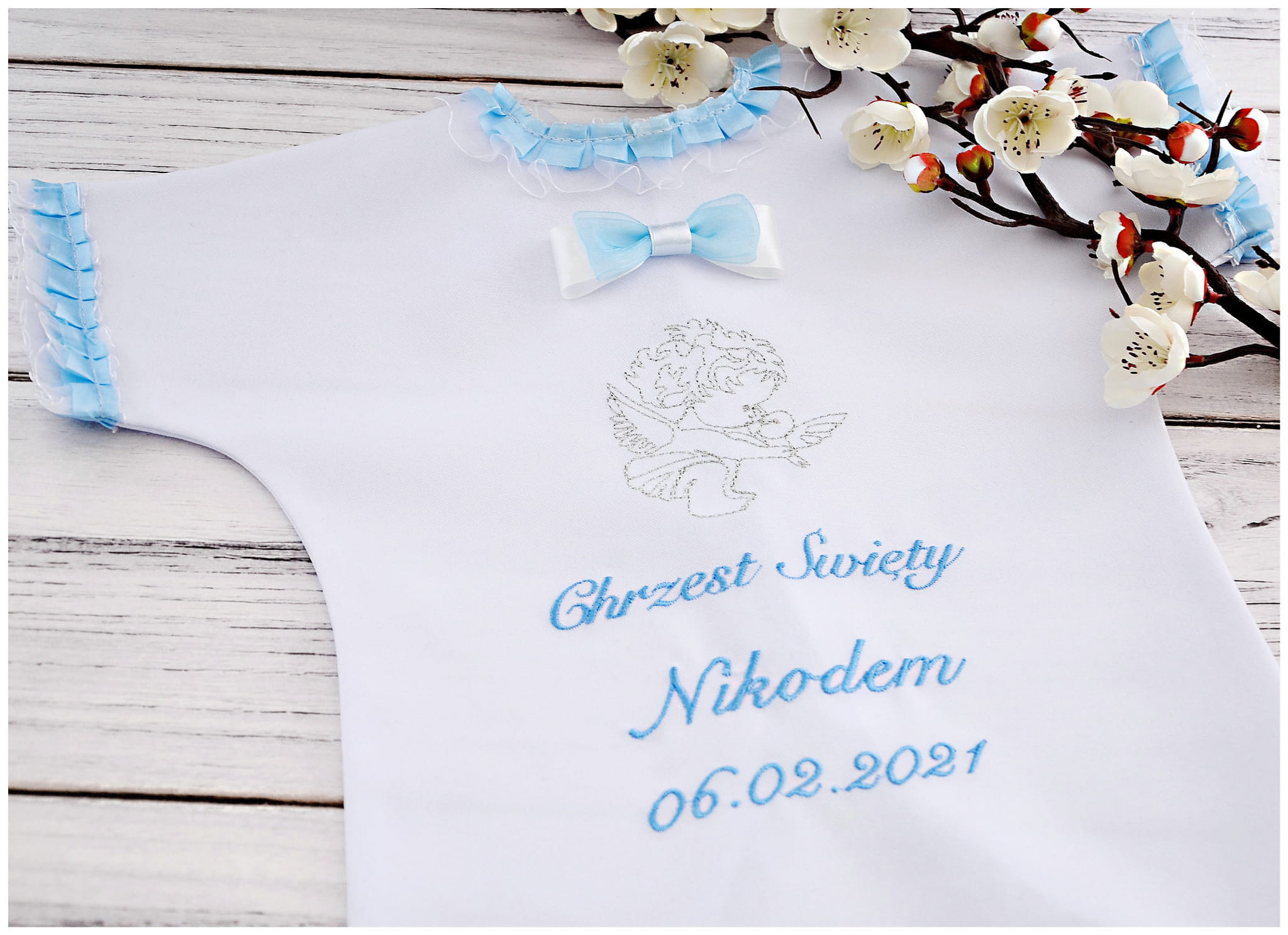 Chrzest Święty to wyjątkowe wydarzenie w życiu dziecka i całej rodziny. To chwila pełna miłości, duchowości i symboliki, dlatego warto zadbać o każdy szczegół tej uroczystości. Oferujemy elegancką, haftowaną szatkę do chrztu w kształcie koszulki, która będzie pięknym dodatkiem do ceremonii oraz wyjątkową pamiątką na długie lata.Cechy i zalety produktu: