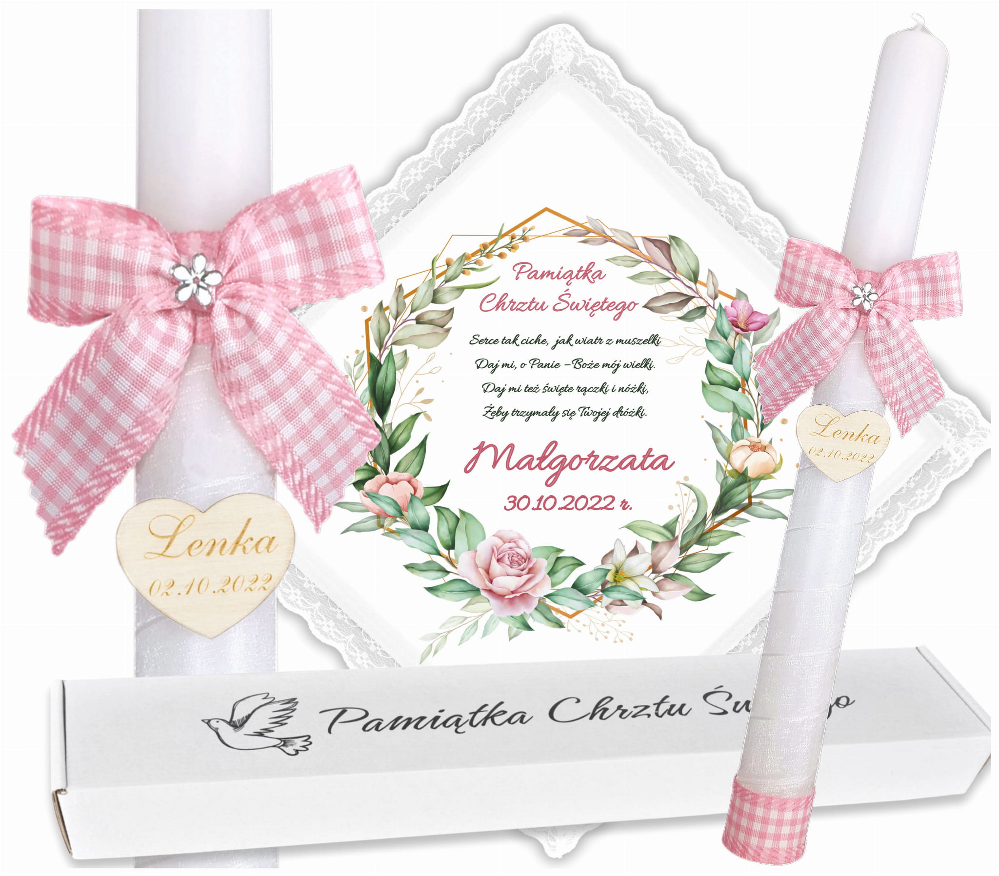 ✔️Świecę do chrztu ozdobioną grawerowanym serduszkiem z imieniem dziecka i datą chrztu (na serduszku grawerujemy pierwsze imię)