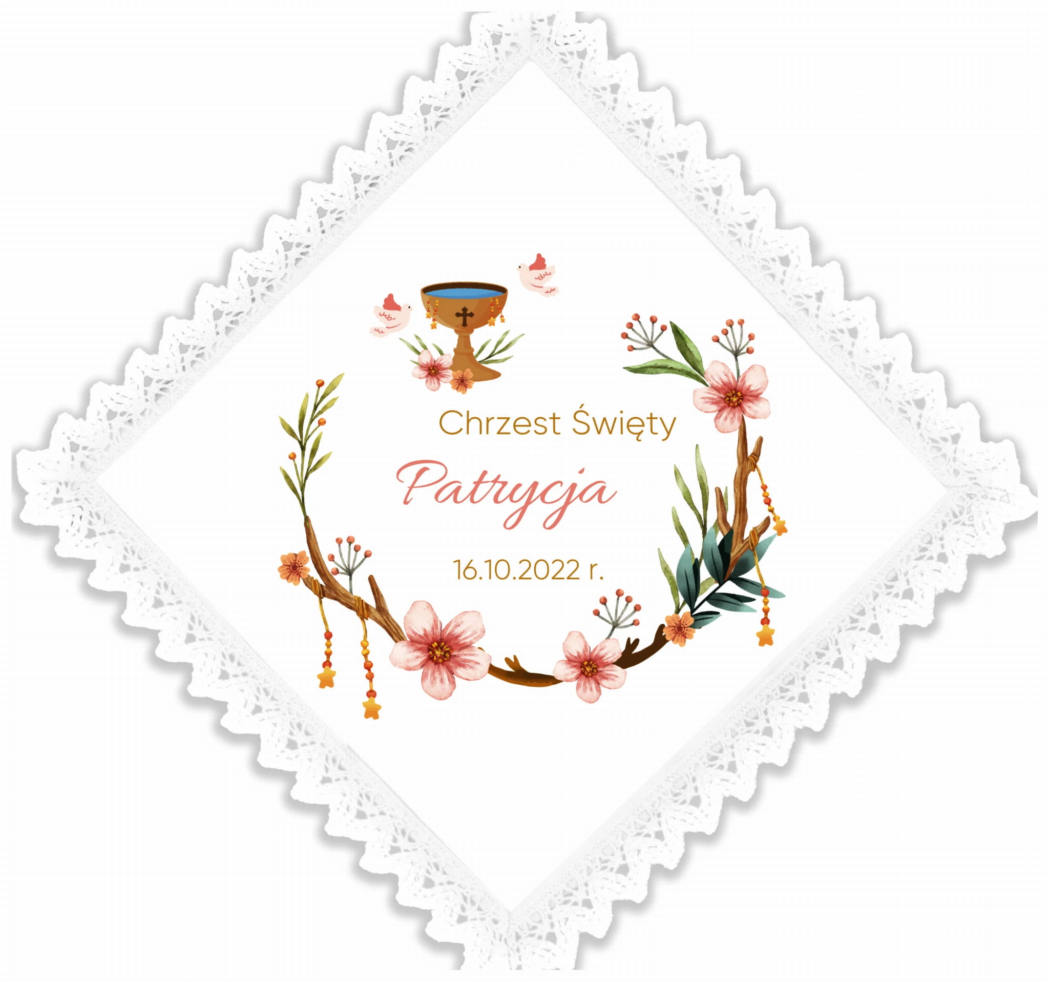 Szatka obszyta delikatną koronką w kolorze białym, ma charakter ponadczasowy i będzie stanowiła piękną pamiątkę tego ważnego sakramentu jakim jest Chrzest Święty.