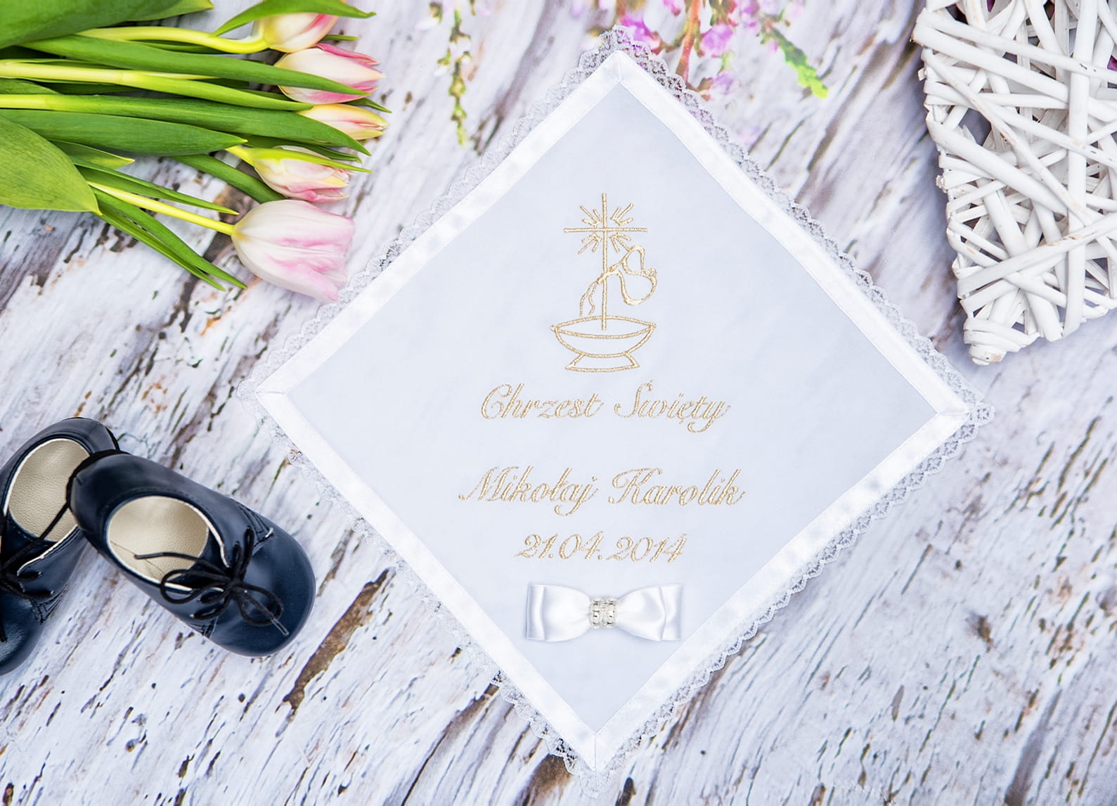 Nasza szatka została wykonana z najwyższej jakości materiałów, które gwarantują jej trwałość i elegancki wygląd przez wiele lat. Na szatce umieszczamy wyhaftowany symbol chrztu oraz imię i datę uroczystości, dzięki czemu staje się ona pamiątką na całe życie.