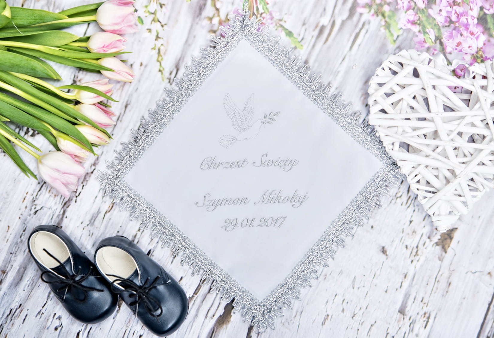 Nasza szatka została wykonana z najwyższej jakości materiałów, które gwarantują jej trwałość i elegancki wygląd przez wiele lat. Na szatce umieszczamy wyhaftowany symbol chrztu oraz imię i datę uroczystości, dzięki czemu staje się ona pamiątką na całe życie.