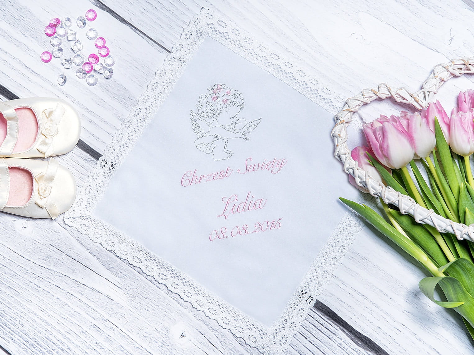 Nasza szatka została wykonana z najwyższej jakości materiałów, które gwarantują jej trwałość i elegancki wygląd przez wiele lat. Na szatce umieszczamy wyhaftowany symbol chrztu oraz imię i datę uroczystości, dzięki czemu staje się ona pamiątką na całe życie.