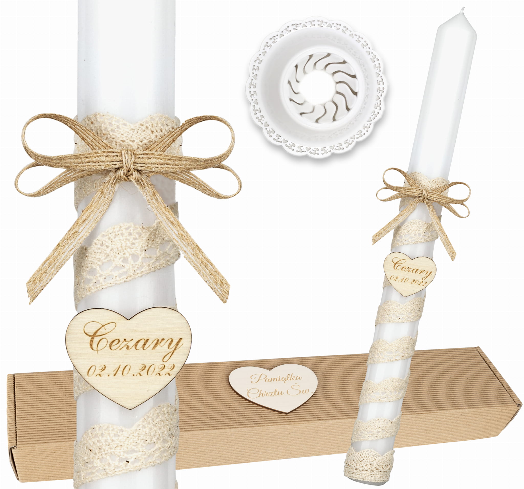 ✔️Świecę do chrztu ozdobioną grawerowanym serduszkiem z imieniem dziecka i datą chrztu (na serduszku grawerujemy pierwsze imię)