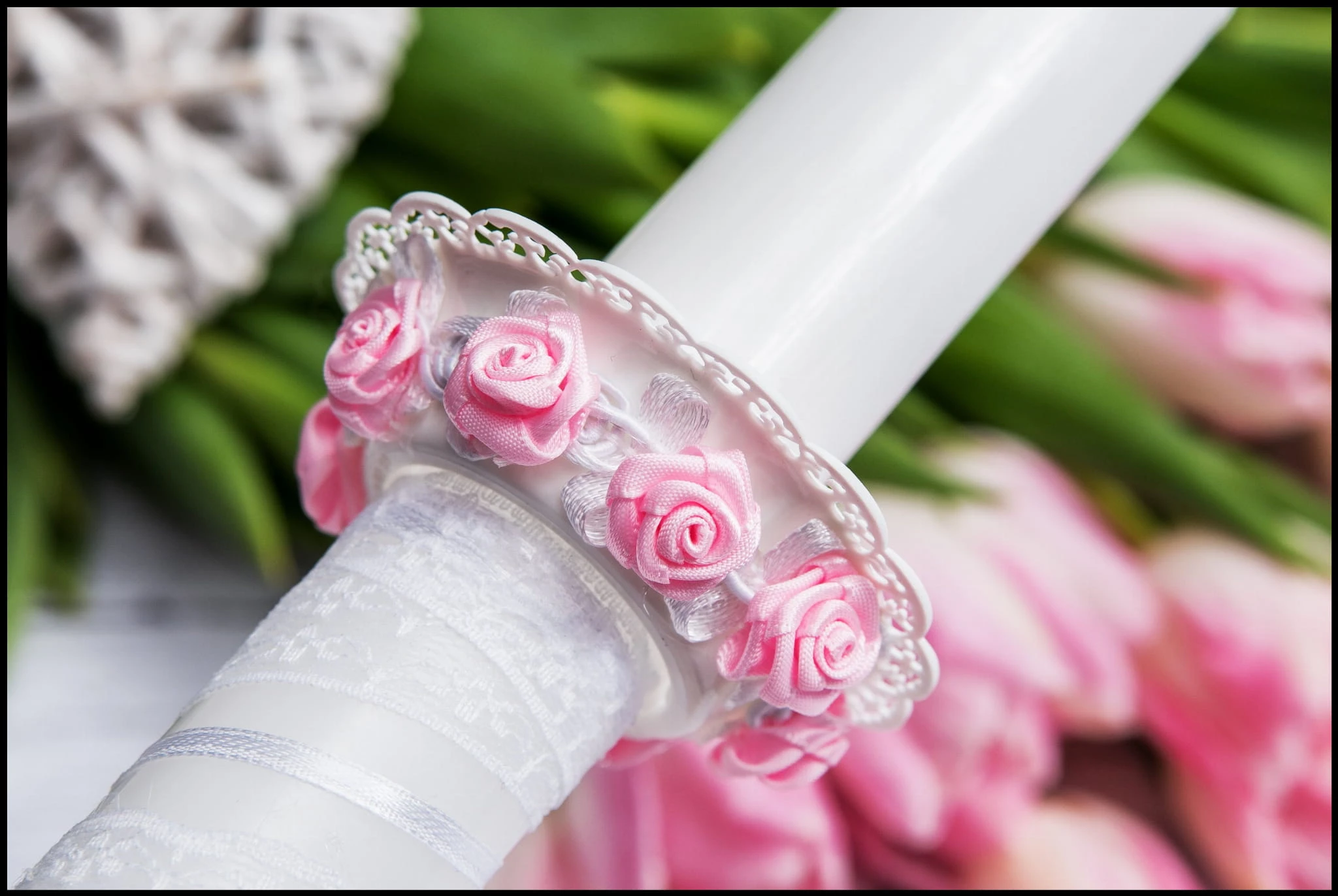 Nowoczesny ozdobny okapnik ozdoba Stroik do świecy CHRZEST Komunia O4c