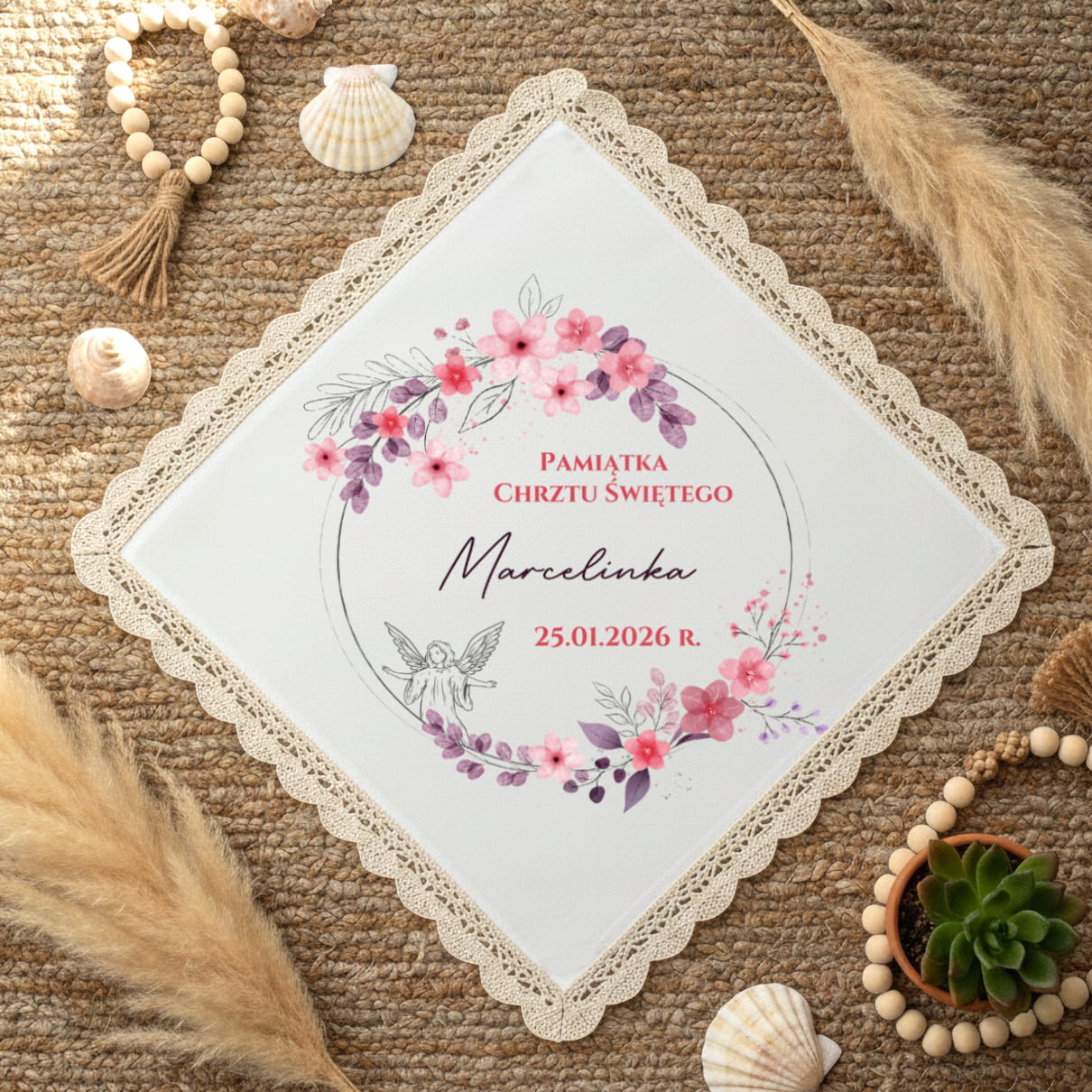 ✔ Personalizowany nadruk – imię dziecka + data Chrztu