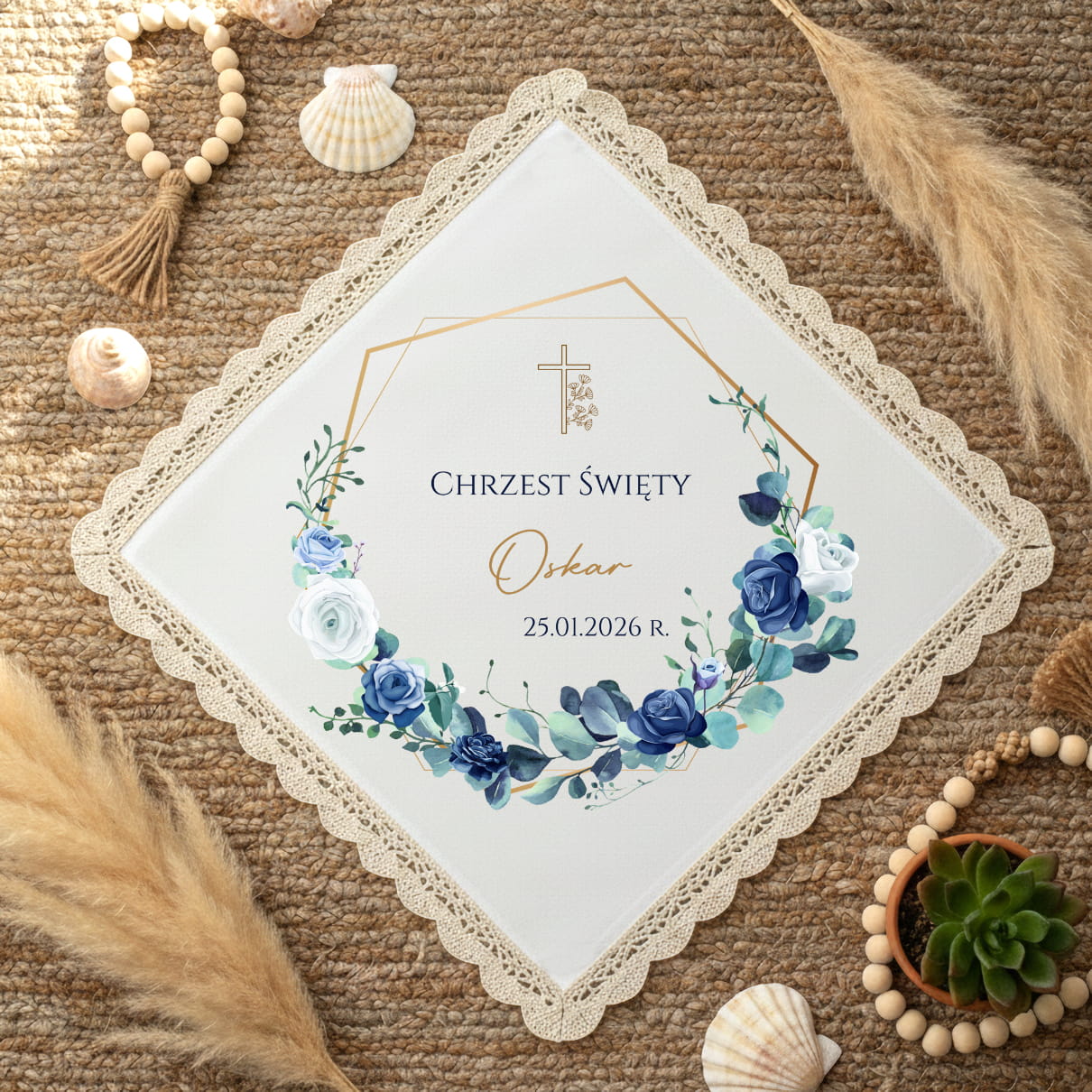 ✔ Personalizowany nadruk – imię dziecka + data Chrztu