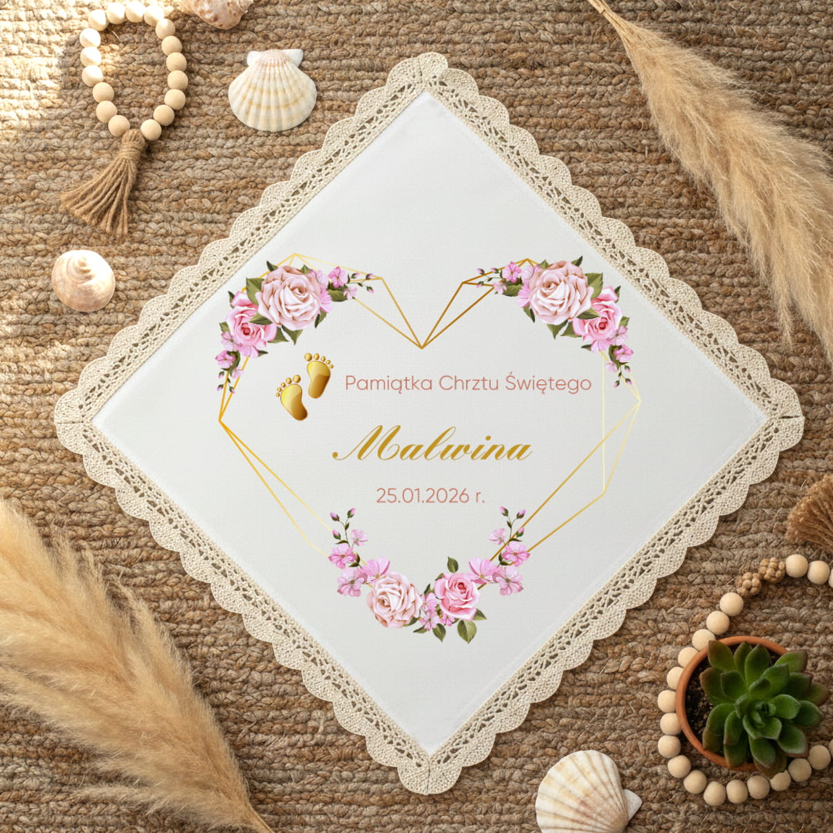 ✔ Personalizowany nadruk – imię dziecka + data Chrztu